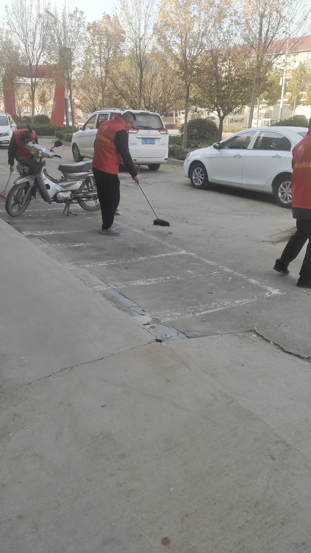 小店兽医站组织工作人员参加社区活动,由于秋季落叶较多,为了小店镇社区城市形象打扫落叶及环境卫生更好的提升城市形象。