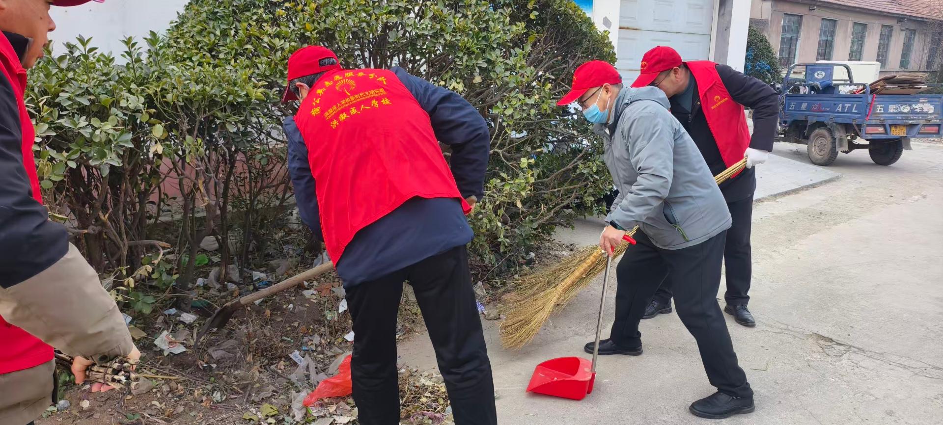 寒假放假前到家属院开展环境清洁志愿服务,清扫房前屋后卫生,清扫落叶、塑料袋、纸屑等,为家属院创造干净整洁有序的生活环境,营造春节氛围,干干净净过大年。