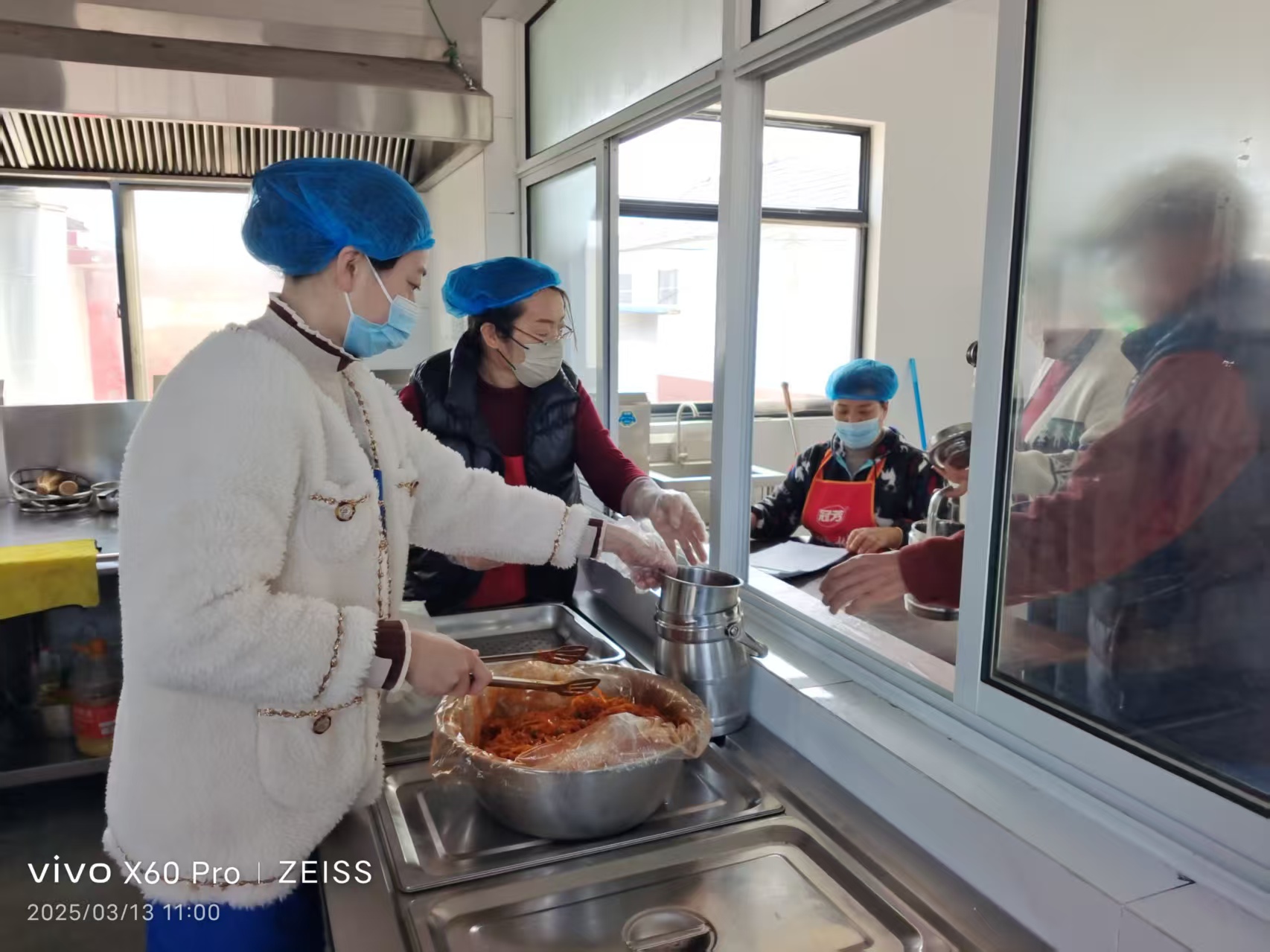 王家滩二村长者食堂于二月二开业,工作人员精心挑选食材,熟练烹饪菜品,耐心为老人分发饭菜,争取每天都让老人们吃上香糯可口的午餐!