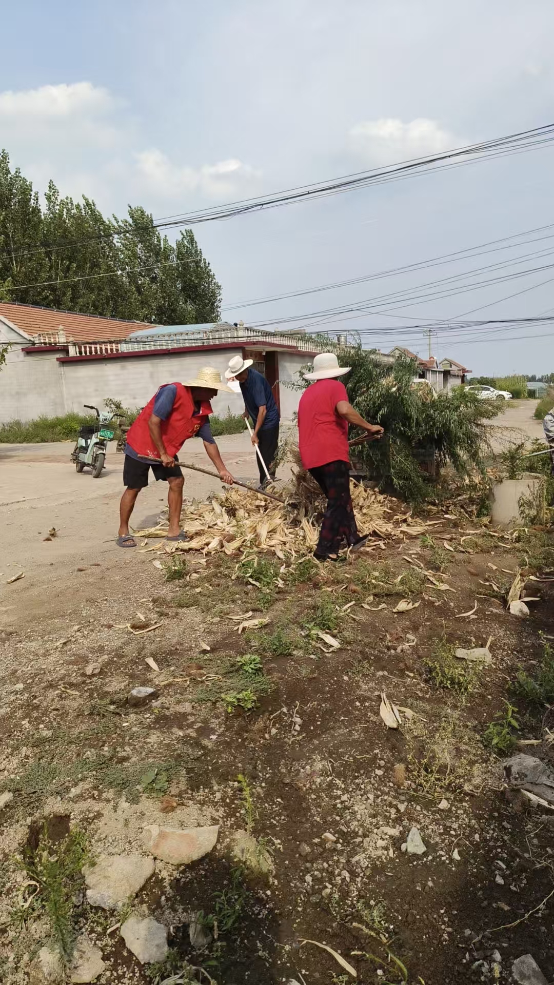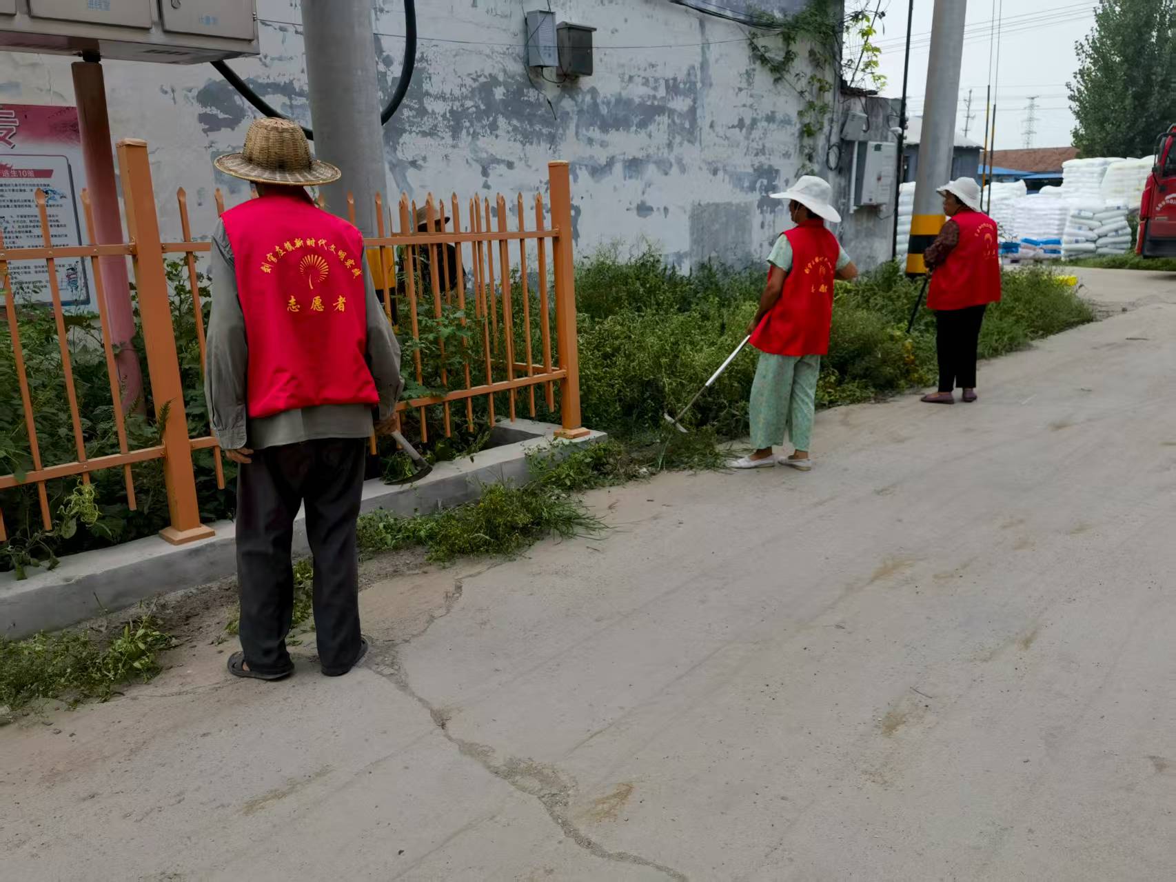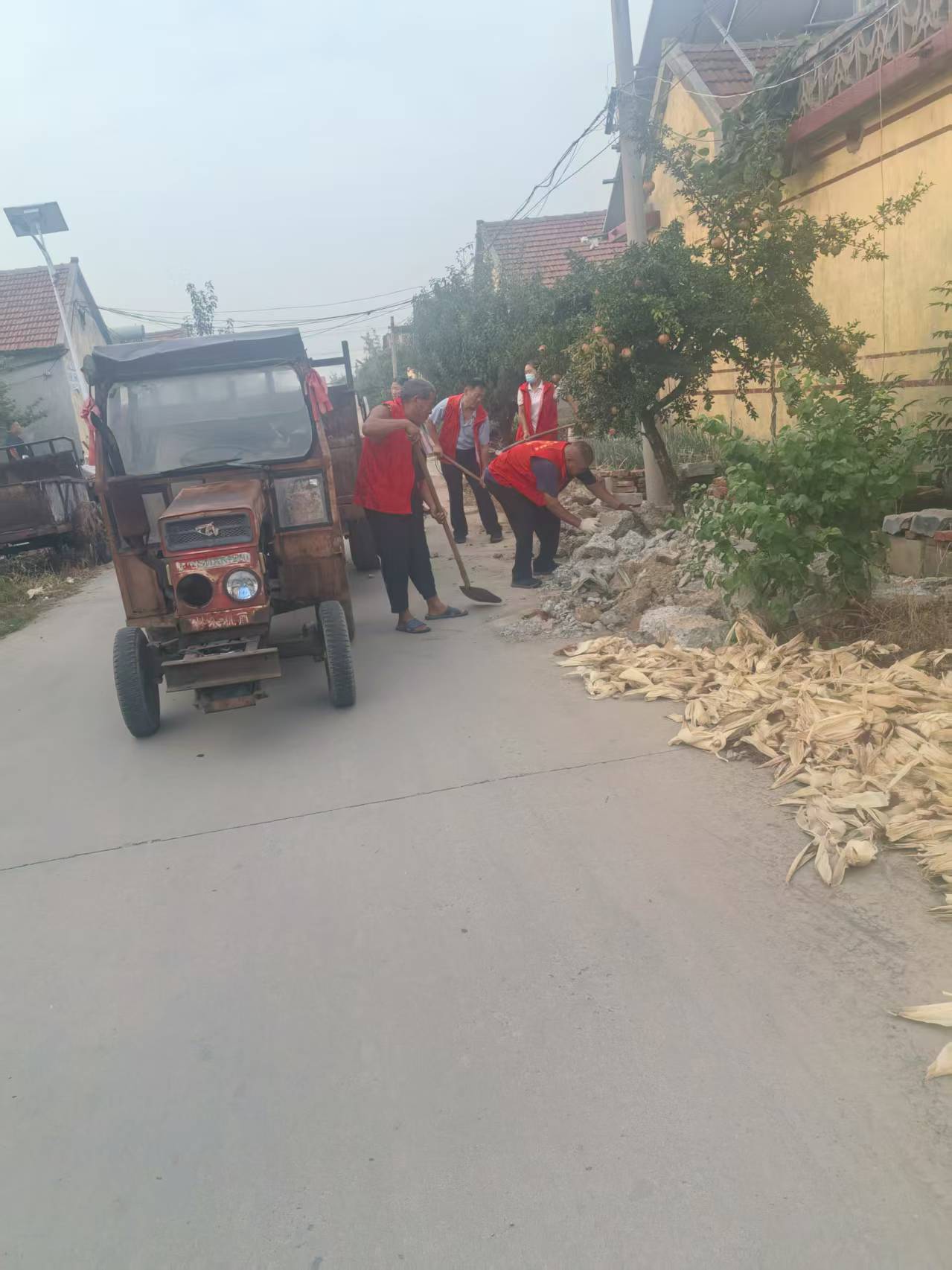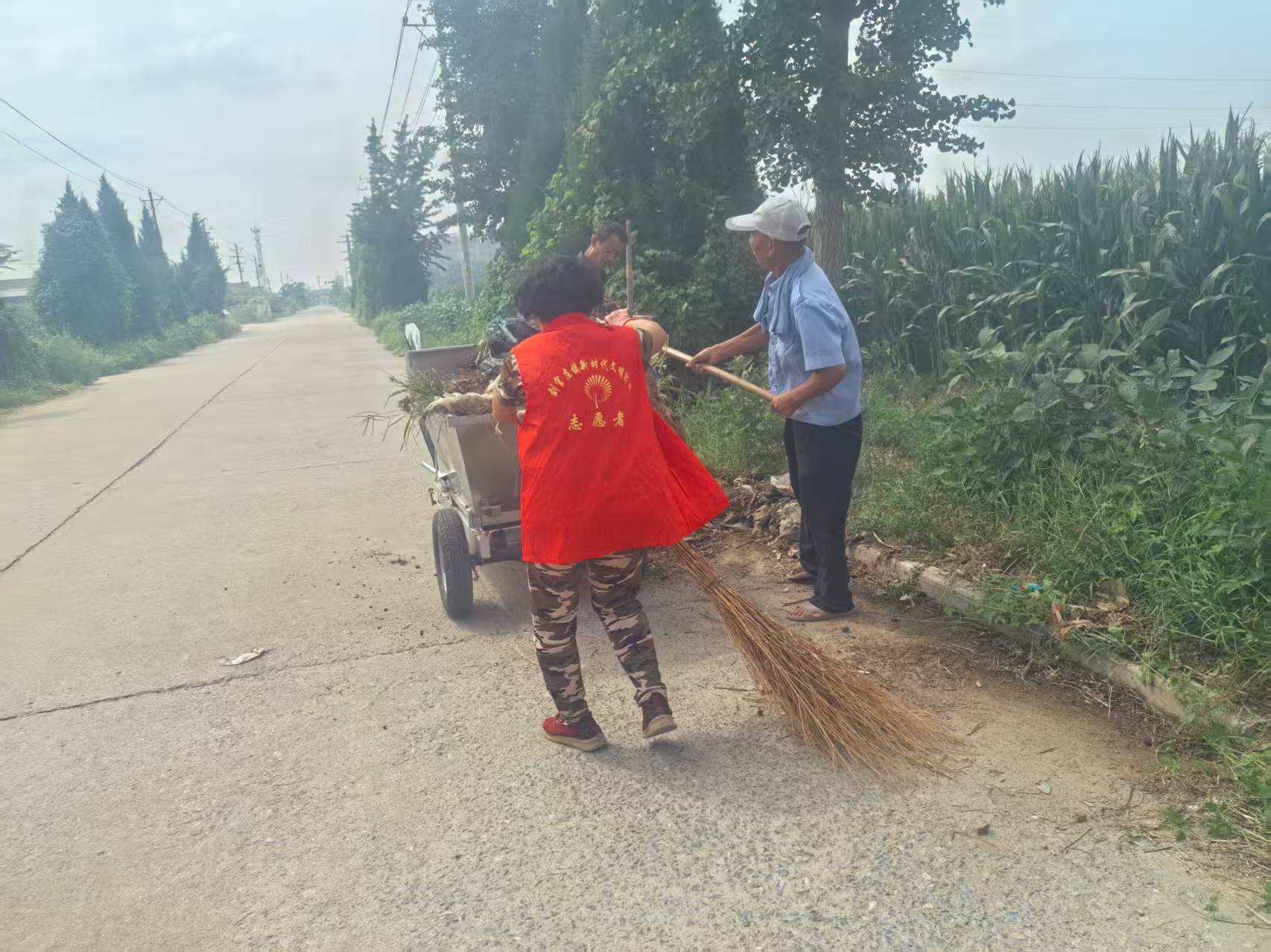 莒县刘官庄镇东李家楼村,志愿服务队参加环境卫生清理整治,村内街道,提高乡村村容,村貌,提高人居环境,整洁卫生。