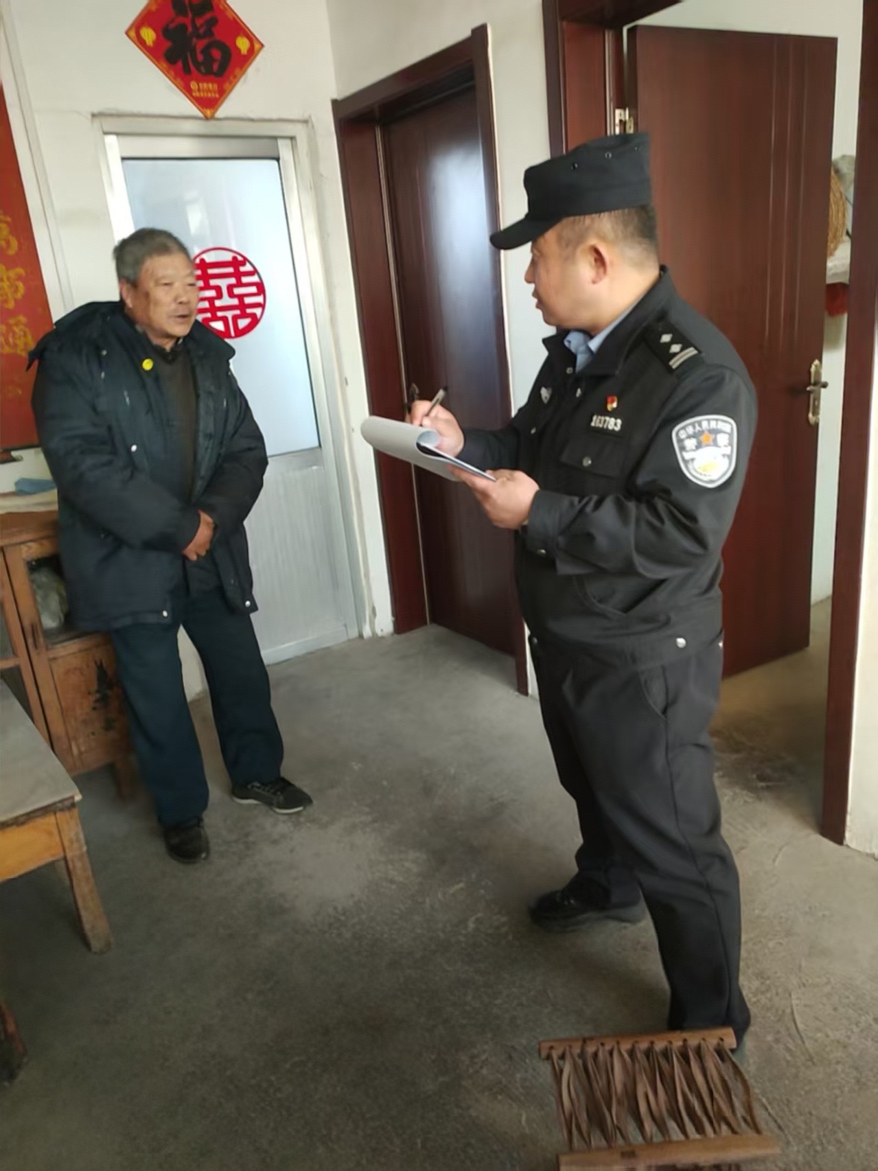 通过入户走访宣传治安管理,给村民宣传普及治安知识,让村民更好的了解一下治安内容,更好的维护老年过渡房。