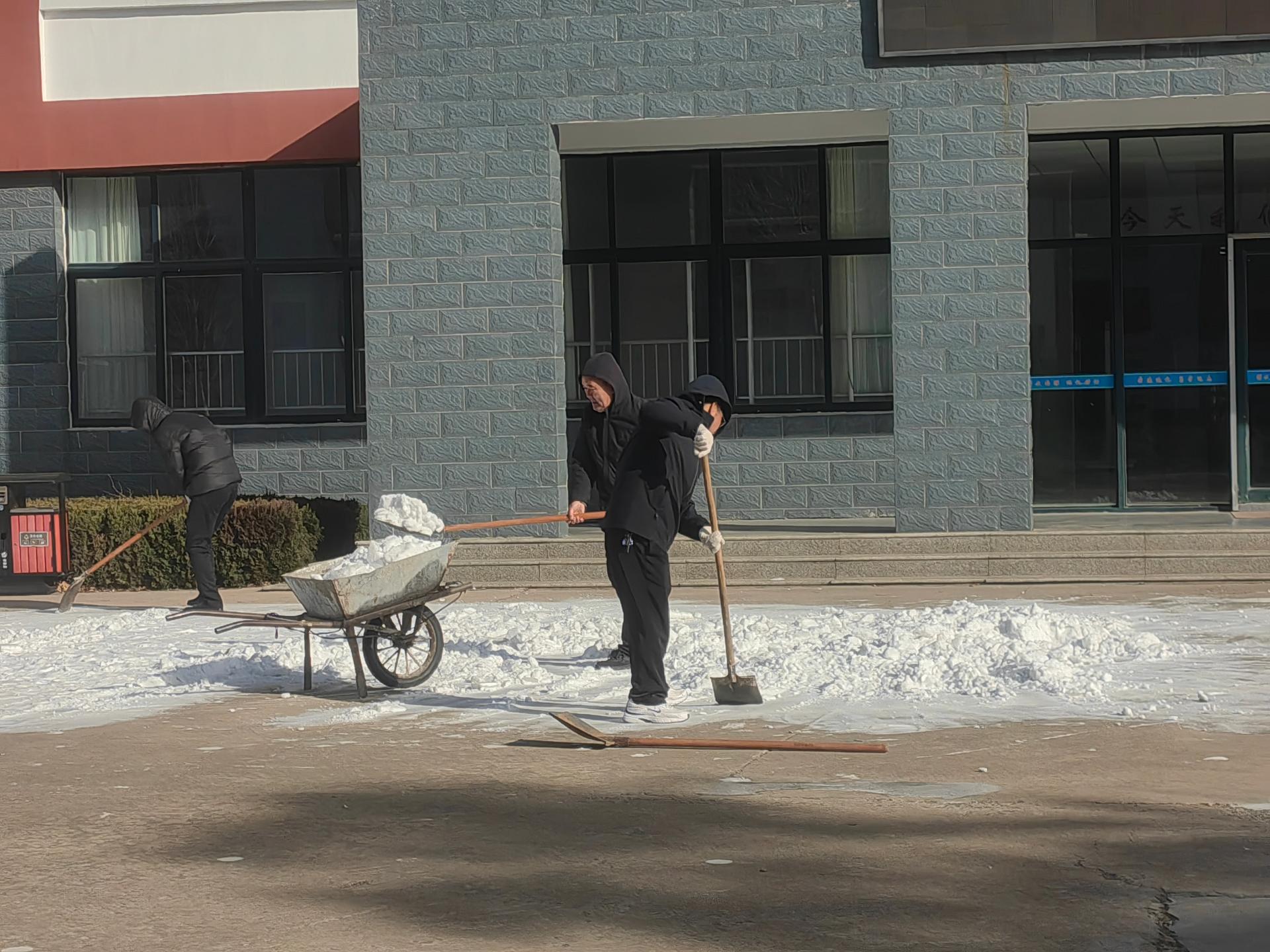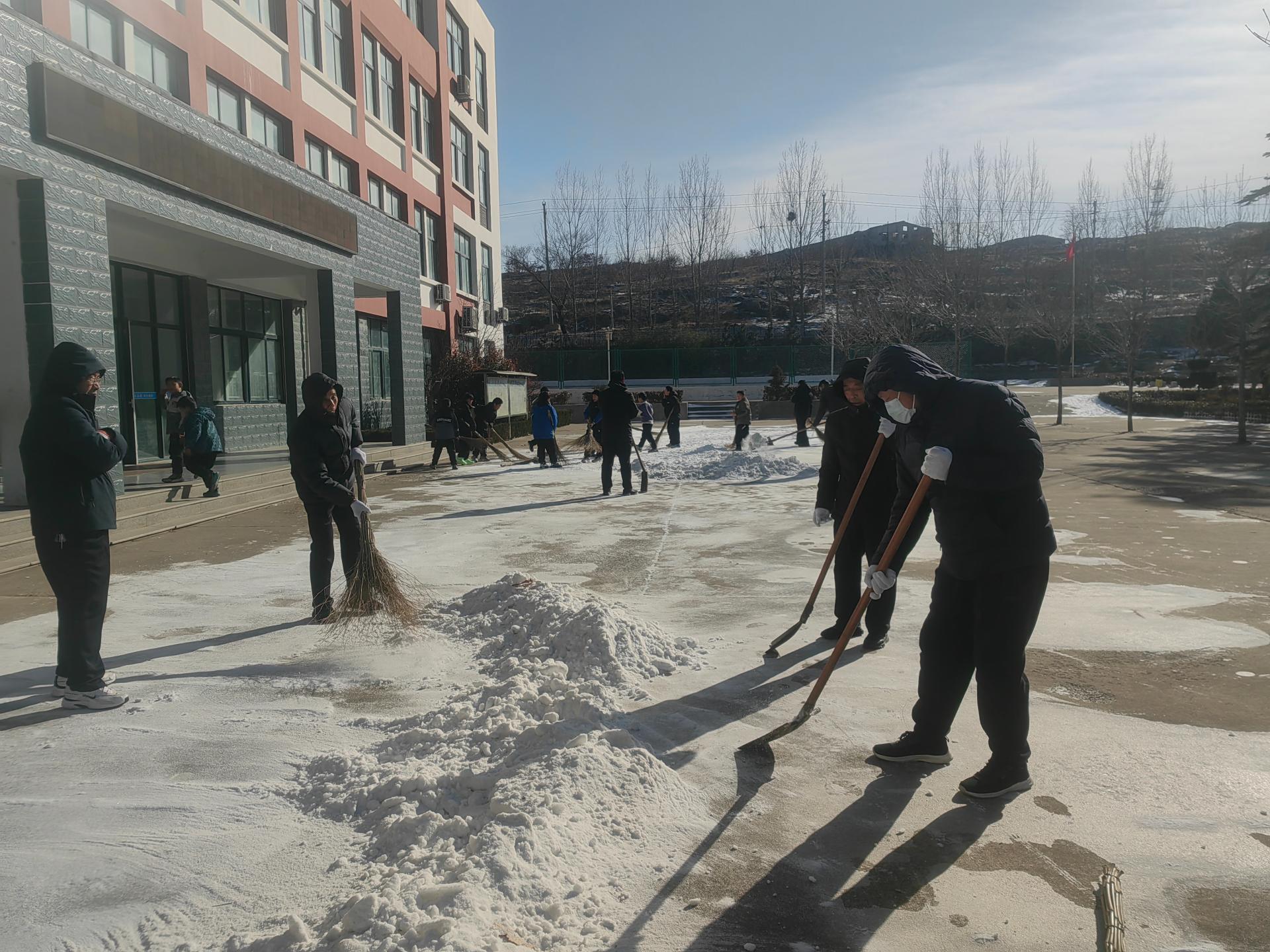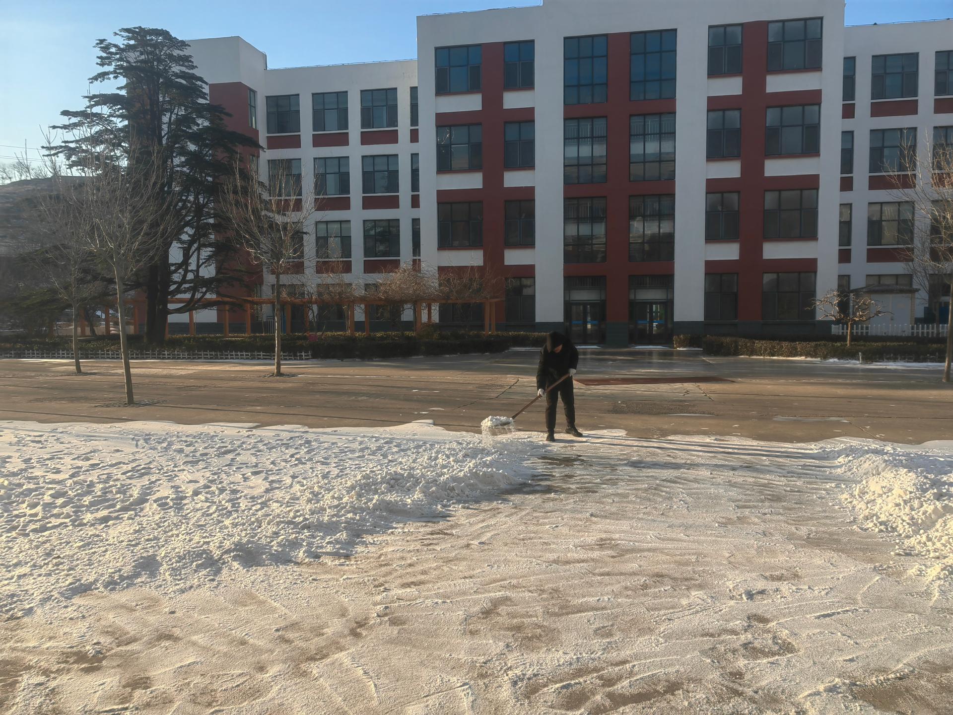 一场雪不期而至。在带来祥瑞,带来雪景的同时,路面的湿滑也带来了诸多安全隐患。为确保学生在校安全,我校教职工迅速行动起来,组织清扫积雪的志愿服务活动。