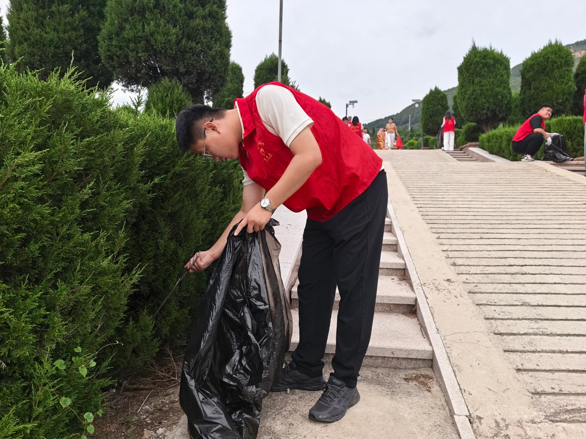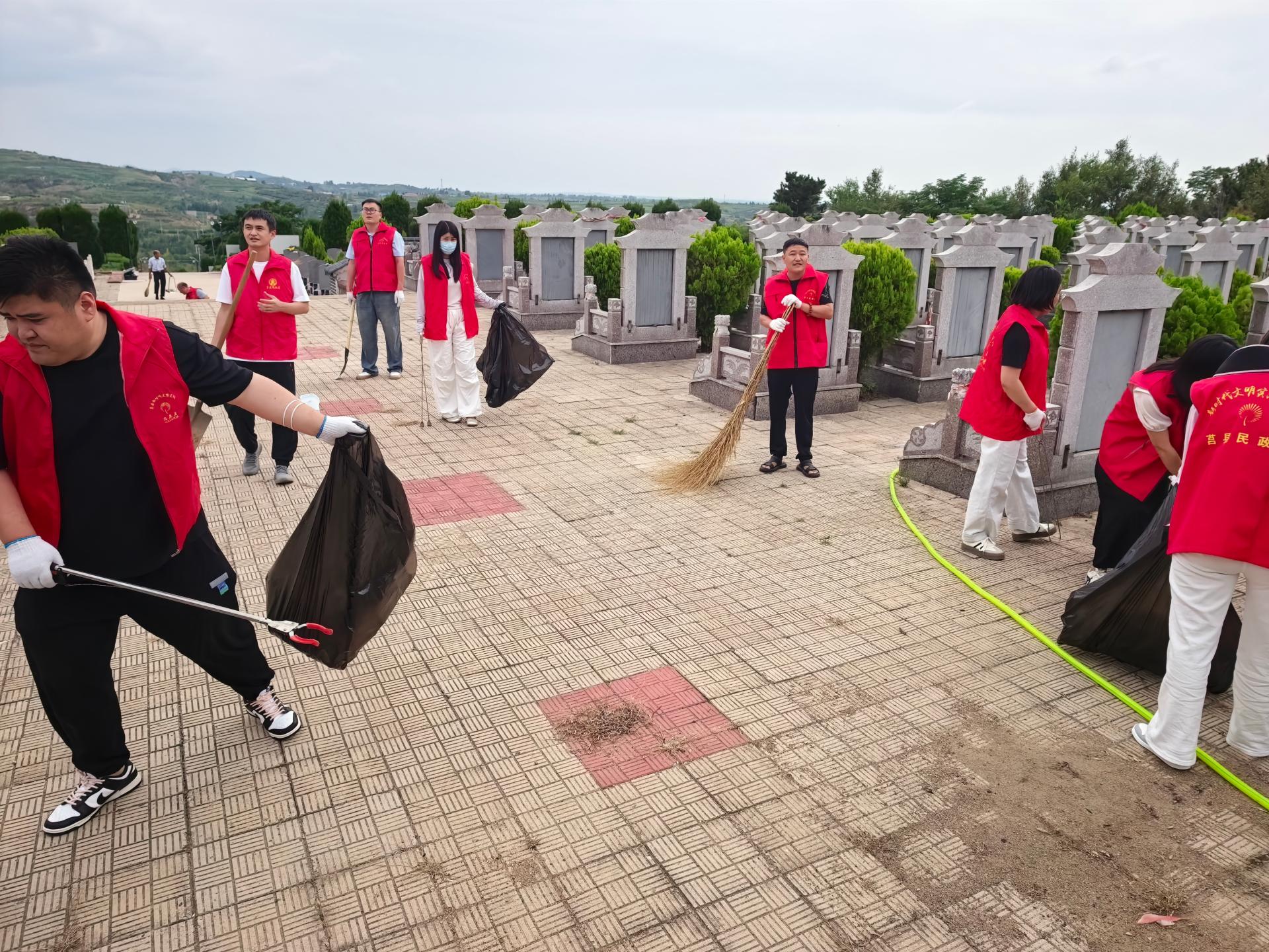 莒县民政局开展“中元节寄哀思,文明伴我行”清理东山公墓卫生环境暨文活动